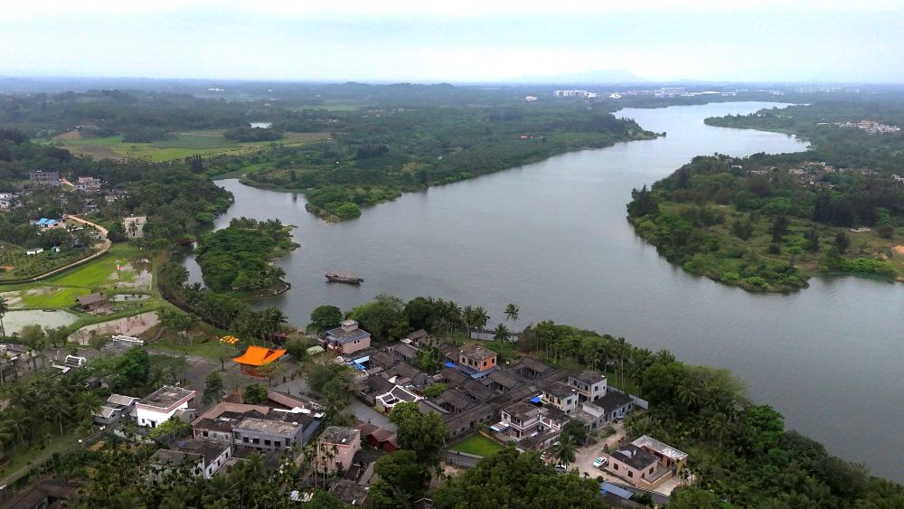 留客村毗邻万泉河,是“下南洋”的必经之路(无人机照片)。新华社记者夏天 摄
