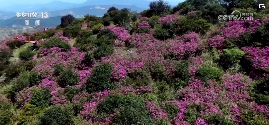 近日,广东凤凰天池景区漫山遍野的杜鹃花次第开放,花海浩瀚、春意浓浓。蔚蓝天空下,朵朵紫红色的杜鹃花肆意舒展着身姿,娇艳似火。春风拂过,花枝摇曳、香飘四溢,招引蜜蜂前来“甜蜜邂逅”。有的则含苞待放,娇羞动人。少量白色杜鹃花点缀其中,清新素雅。游客沿着蜿蜒的栈道前行,徜徉于花海中,合影留念。