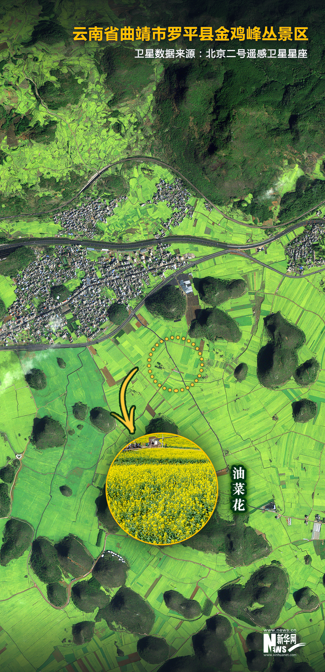 2月19日在云南省罗平县金鸡峰丛拍摄的油菜花海。新华社记者 胡超 摄