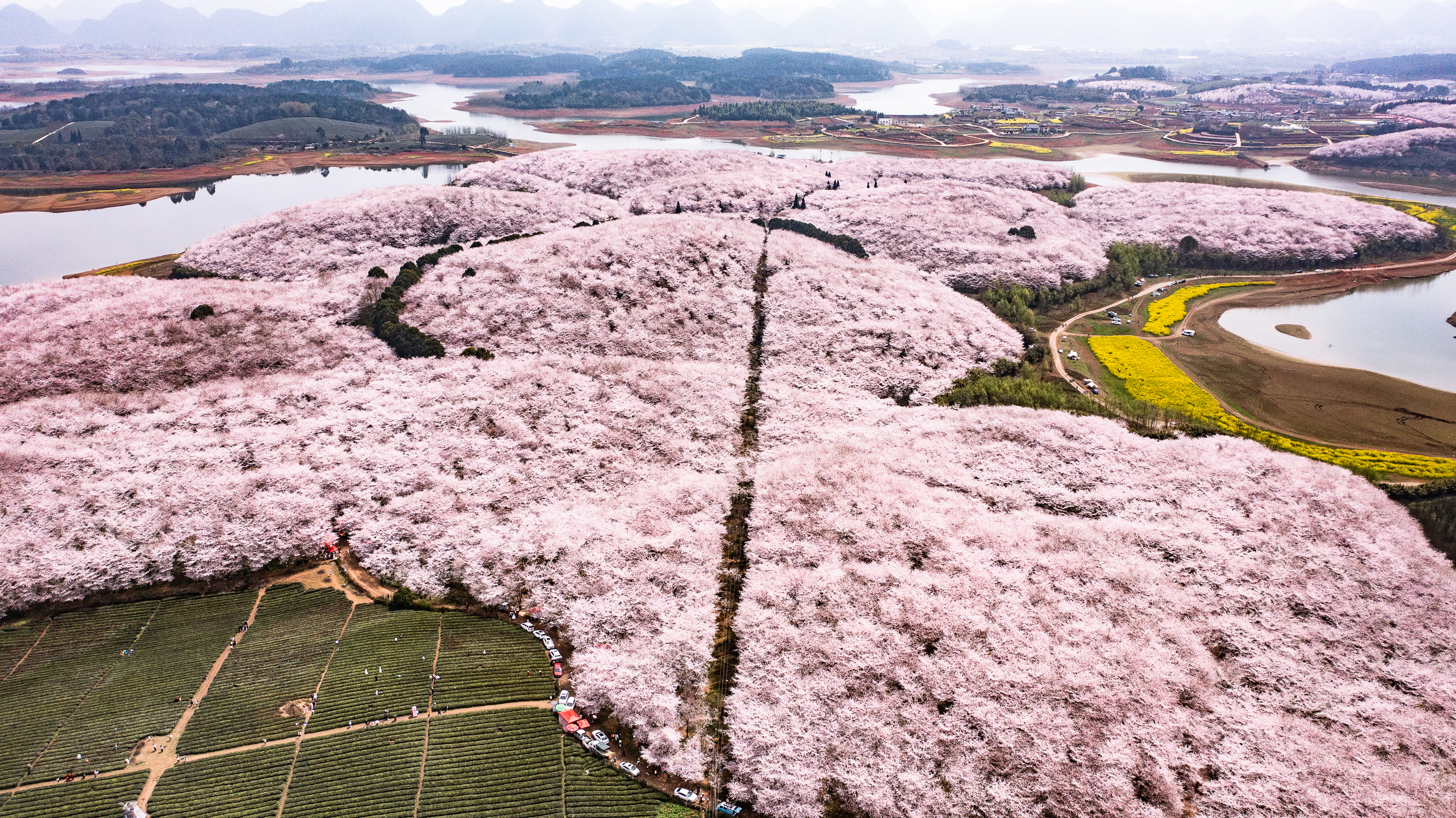 贵州省贵安新区樱花园风貌(3月21日摄,无人机照片)。新华社记者 陶亮 摄