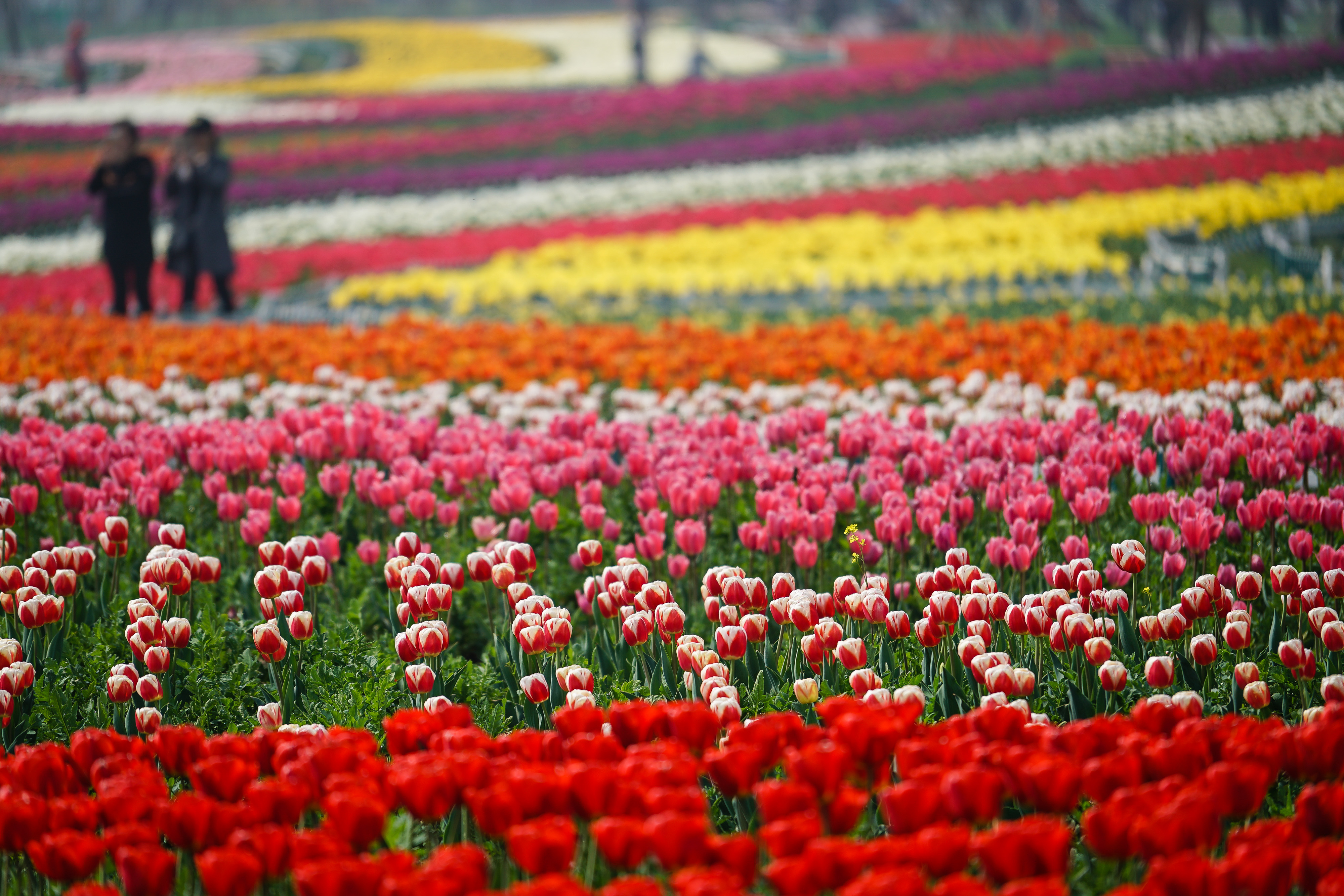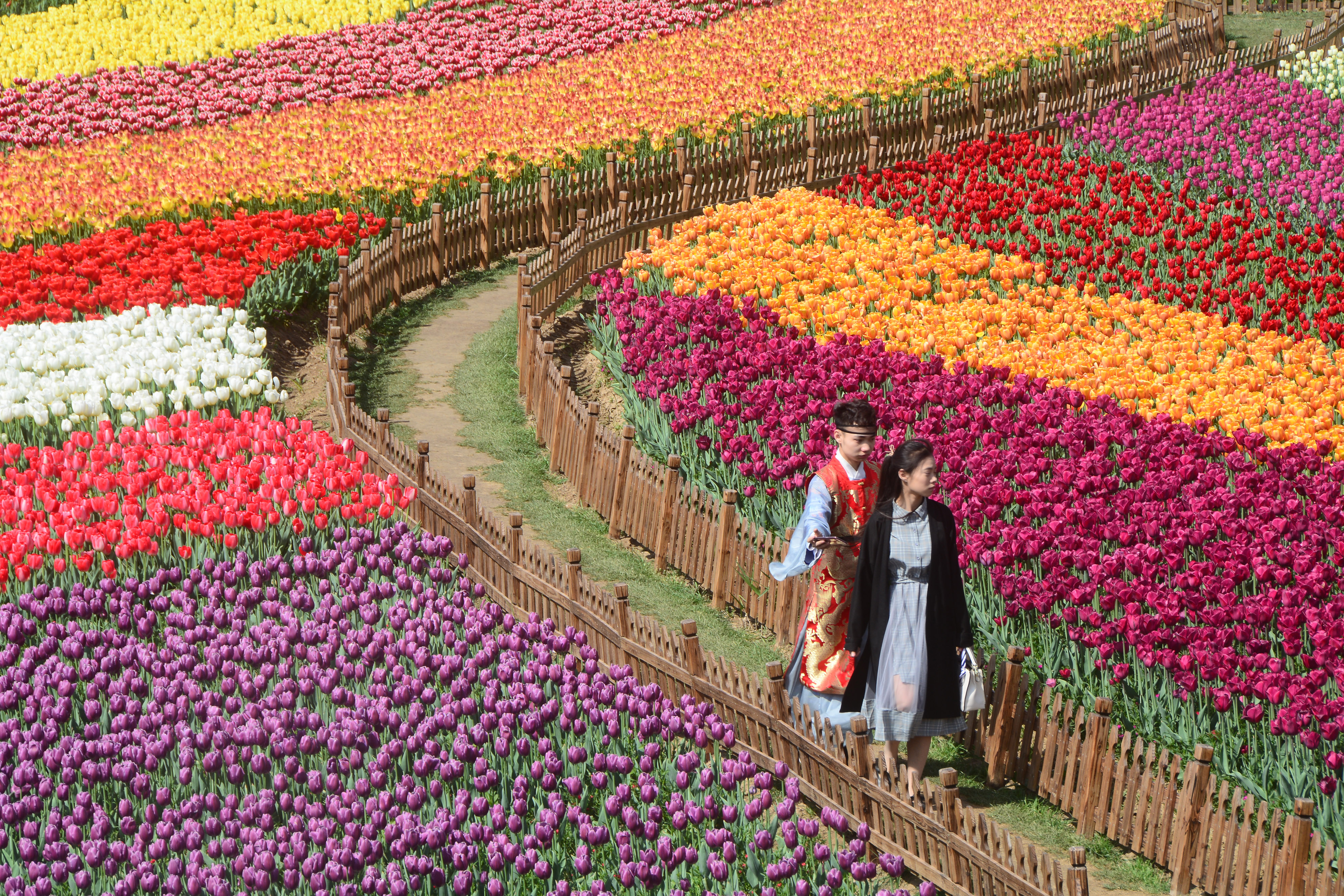 游人在荷兰花海景区赏花游玩。新华社发(周古凯 摄)