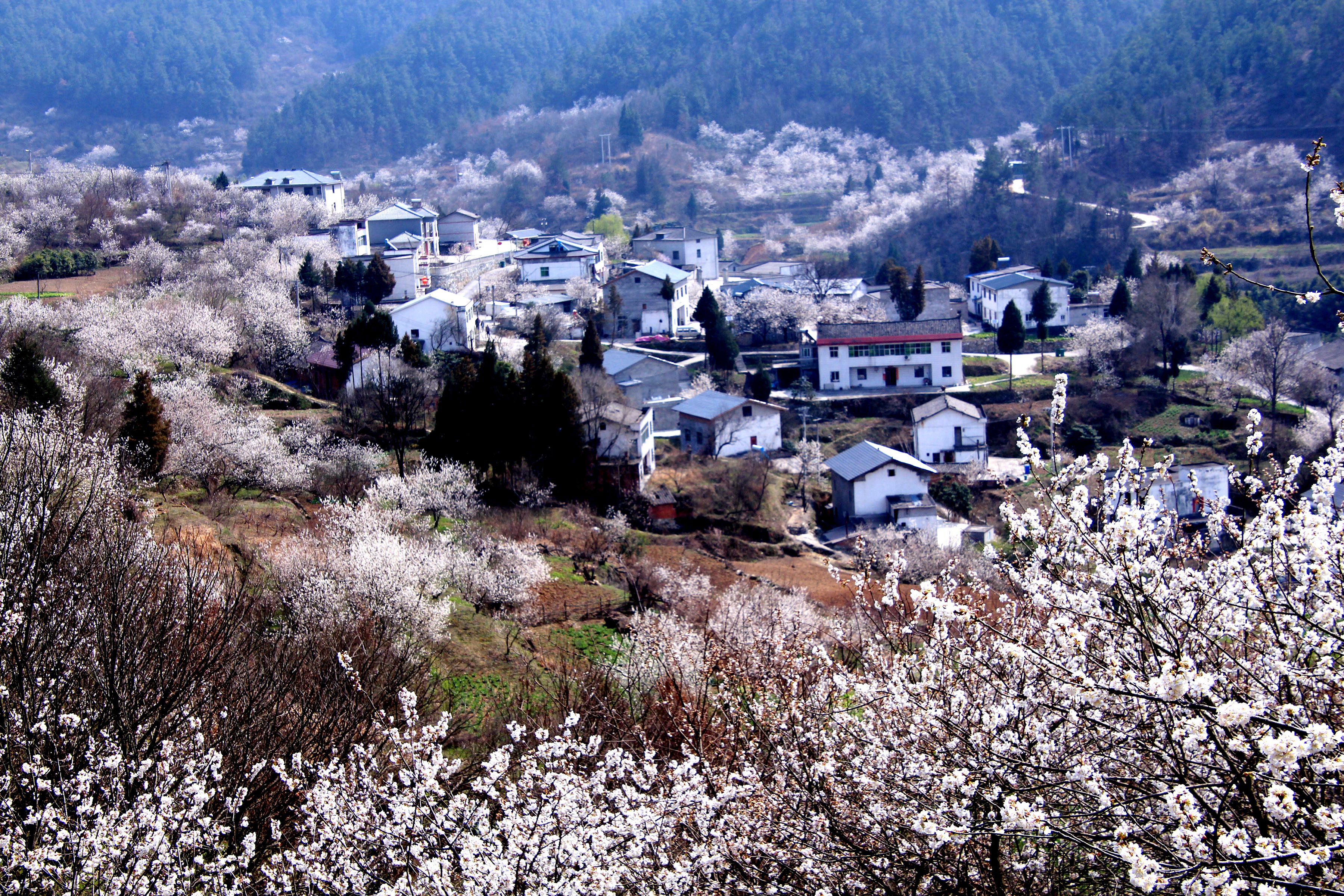 在湖北省十堰市郧阳区茶店镇樱桃沟村,房屋掩映在花海中(3月12日摄)。新华社发(曹忠宏摄)