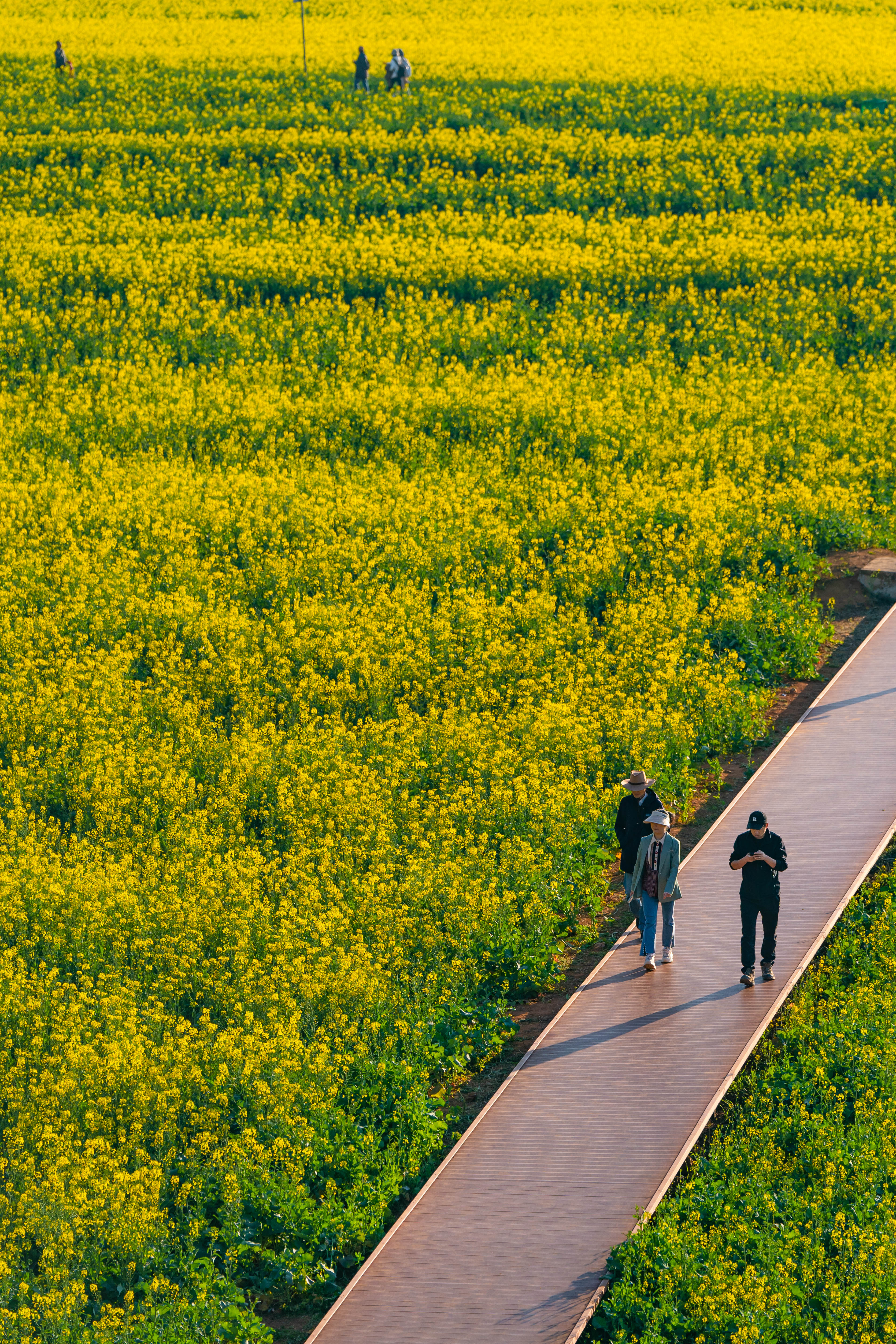 2月19日,游人在云南省罗平县金鸡峰丛拍摄油菜花。新华社记者 胡超 摄