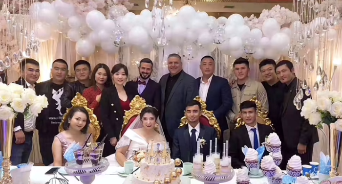 费尔南多(中)和教练组参加球员婚礼