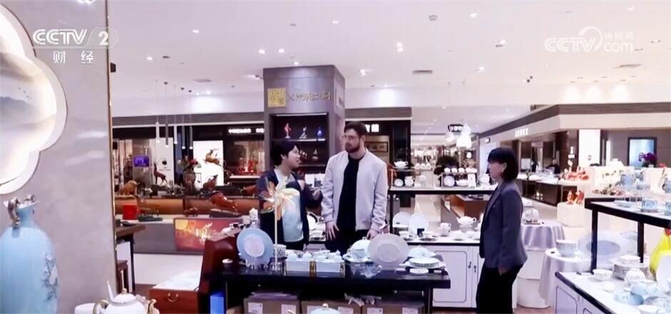 俄罗斯游客安德烈称:“我特别喜欢这里的瓷器和工艺品,特别漂亮。我刚刚还听说在店里就可以退税,真的很高效。”