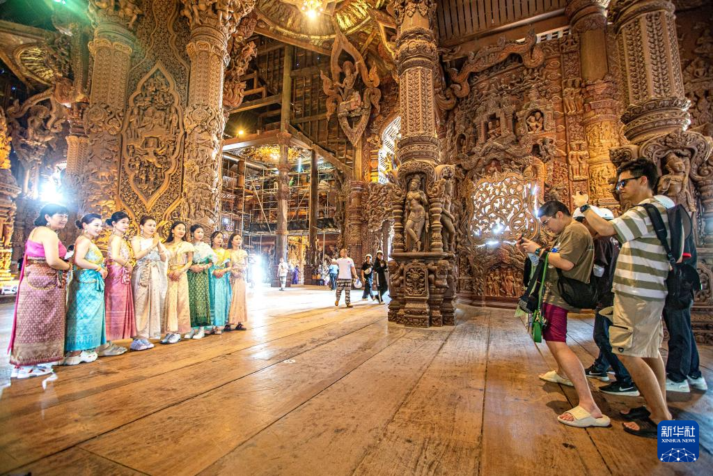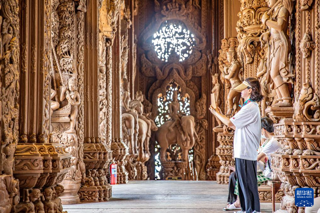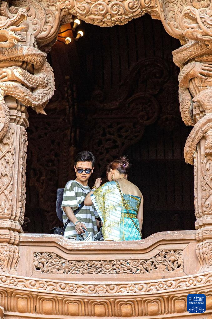 3月29日,游客在泰国芭堤雅真理圣殿游览。新华社记者 王腾 摄