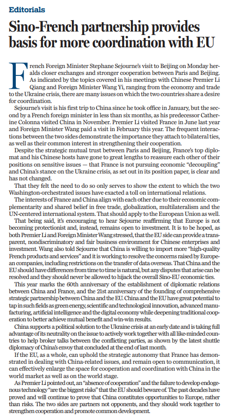 原文标题:Sino-French partnership provides basis for more coordination with EU