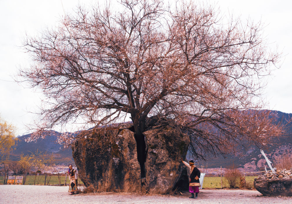 当地至今流传一则关于这株桃树的浪漫故事。传说一少年为给跌落山谷的母亲疗伤,向桃树之王寿多求取仙桃。寿多被其救母之心打动,让小女儿送去仙桃,两人互生情愫,浪漫的爱情让仙桃生根发芽,破石而出,绽放桃花。