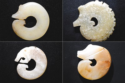 河南安阳殷墟博物馆新馆内展出的龙形玉玦。新华社记者 李安摄