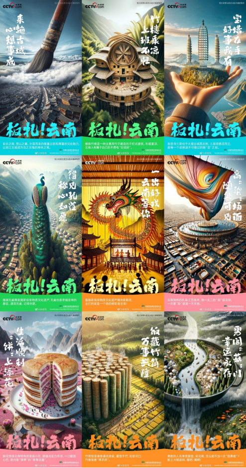当“云南”两个字出在眼前,脑海中浮现的是蓝天白云、大理古城还是各种美食?《板扎!云南》系列创意海报想要来点新意,让云南插上AI的翅膀。