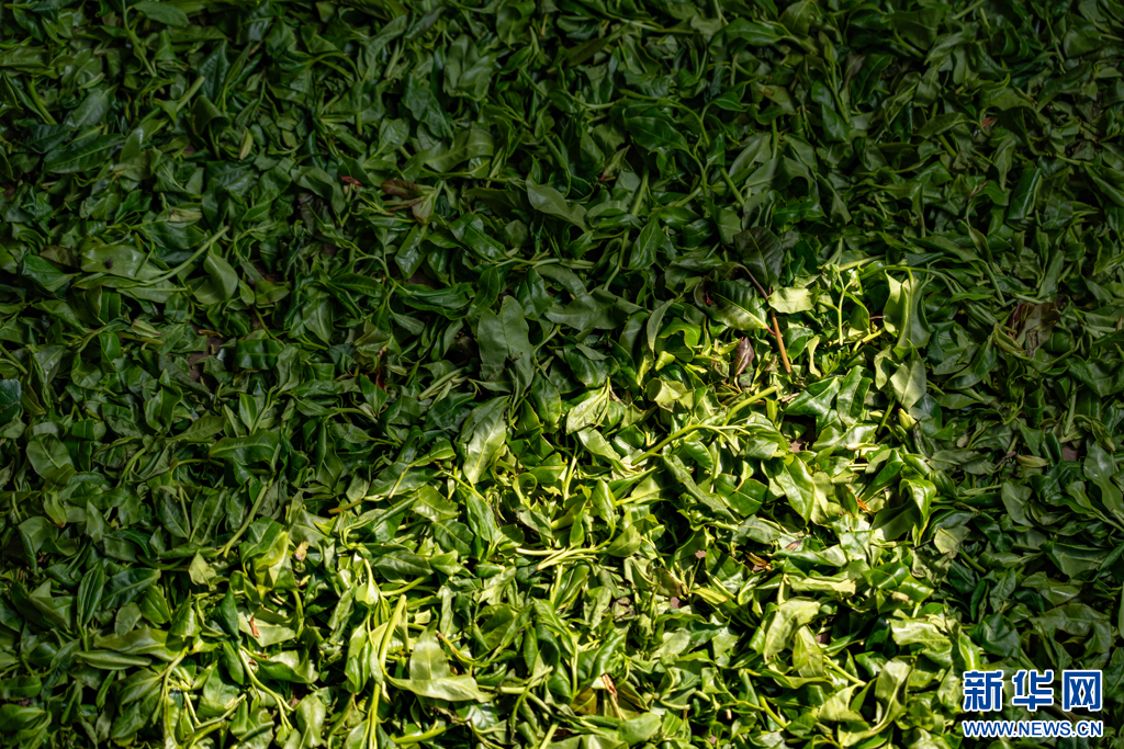 新鲜采摘的茶叶(4月1日摄)。新华网 刘东 摄