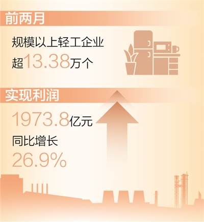 前两月规上轻工企业实现利润同比增长26.9%(新数据 新看点)