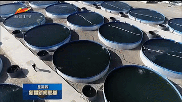 赵忠斌介绍,从上游来的天山涌泉水,经过陆基养殖系统,5小时循环一次,因此就算在露天环境下,吐鲁番最热的时候,水温也不会超过18℃。