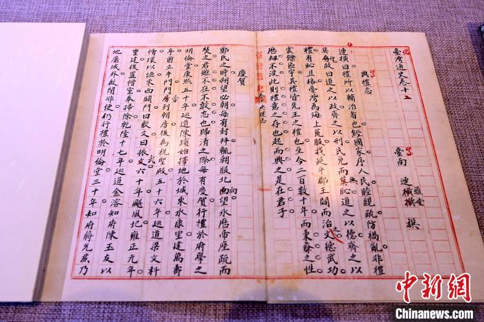 图为连横《台湾通史》手稿残卷影印本。中新社记者 张金川 摄