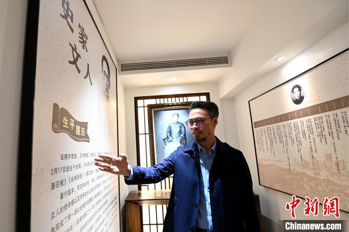 福建省连横文化研究院理事长连明富向参观者介绍连横文化。中新社记者 张金川 摄