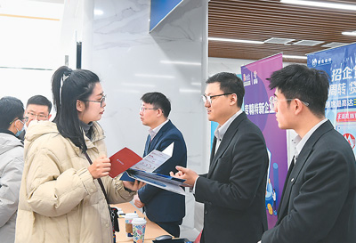 在安徽省合肥市蜀山经济技术开发区举办的第二届金融集市上,金融机构员工(右)向企业人员介绍普惠金融产品。陈三虎摄(人民视觉)