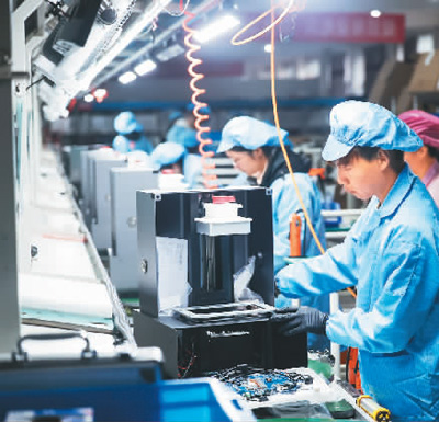 浙江省绍兴市柯桥区积极引导企业加大研发投入、人才引进培育以及新技术新设备应用,培育构建以现代纺织、新材料、生物医药、泛半导体为主的现代产业体系。图为4月8日,在位于柯桥区的一家公司生产车间内,工作人员在组装3D打印机。新华社记者 徐 昱摄