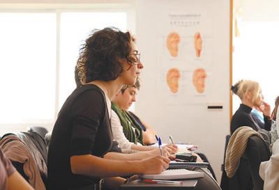 西班牙学生正在中医课上认真听讲。 本报记者 颜 欢摄