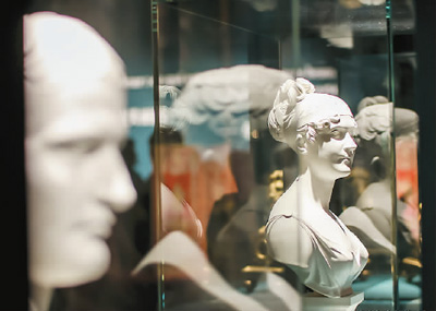 步入展厅,一座带裂痕的拿破仑胸像让厚重的历史感扑面而来。这座雕像头戴桂冠,身上碎裂和烈火烧灼的印迹仿佛在诉说着曾经的传奇。