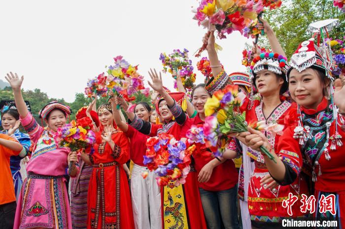 中新社南宁4月11日电 4月11日,农历三月初三,壮乡广西到处都是“歌舞的海洋”。赶歌圩、赏非遗、品民俗,海内外宾客纵情体验独具魅力的壮文化风情。