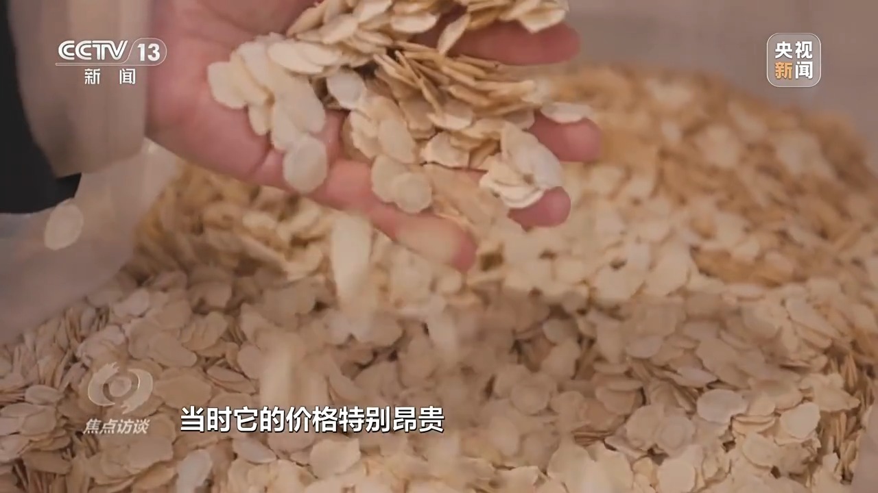 山东威海市文登区口子李村党支部书记 王文水:我们24小时在这里看守着,观察记录它的温度,1981年4月20日播下了12粒种子,在1981年5月20日长出8棵苗。当时西洋参的价格特别昂贵,从外面买过来的西洋参干品是几千元一公斤,我们觉得这是发家致富的好项目。