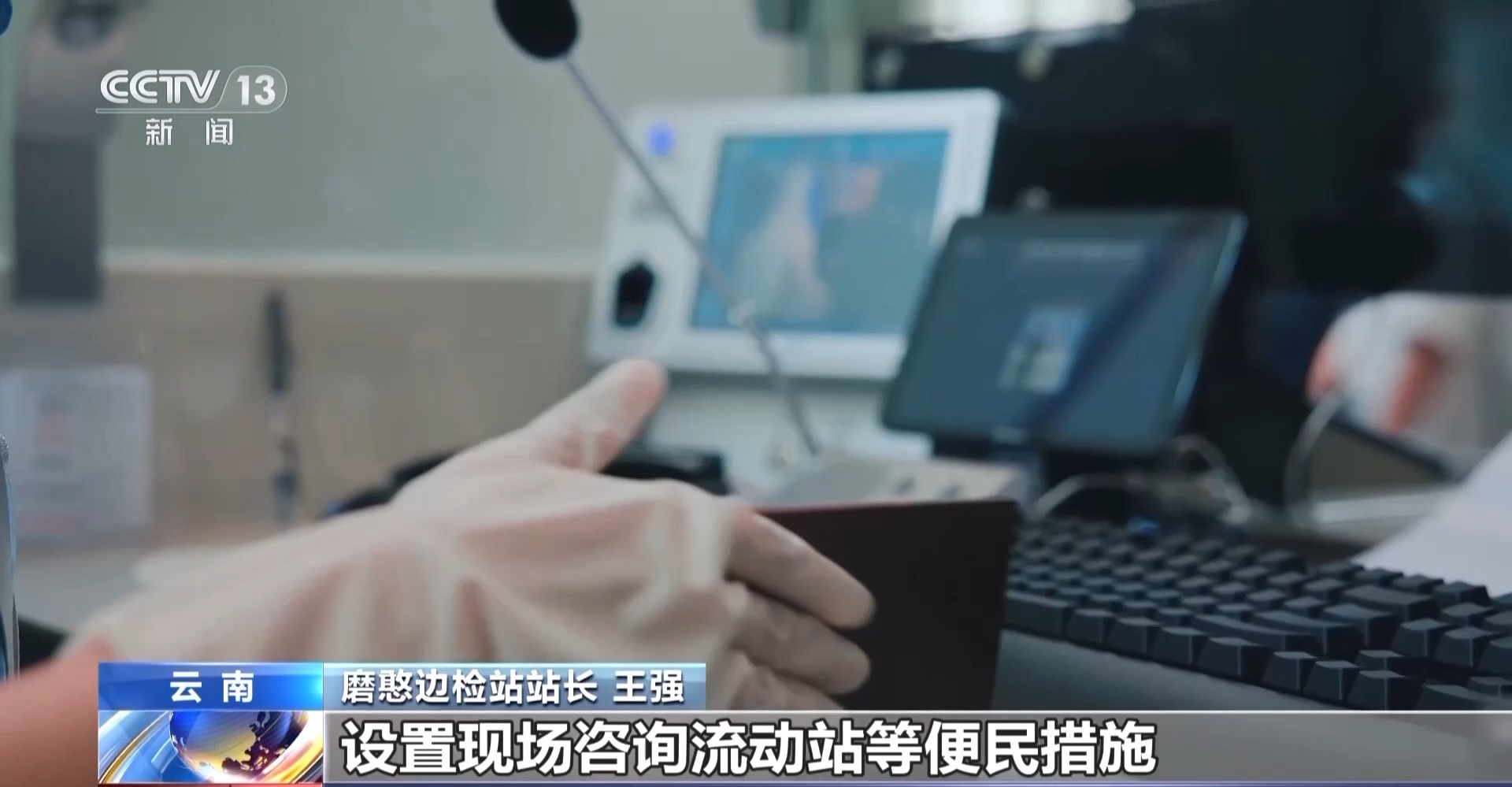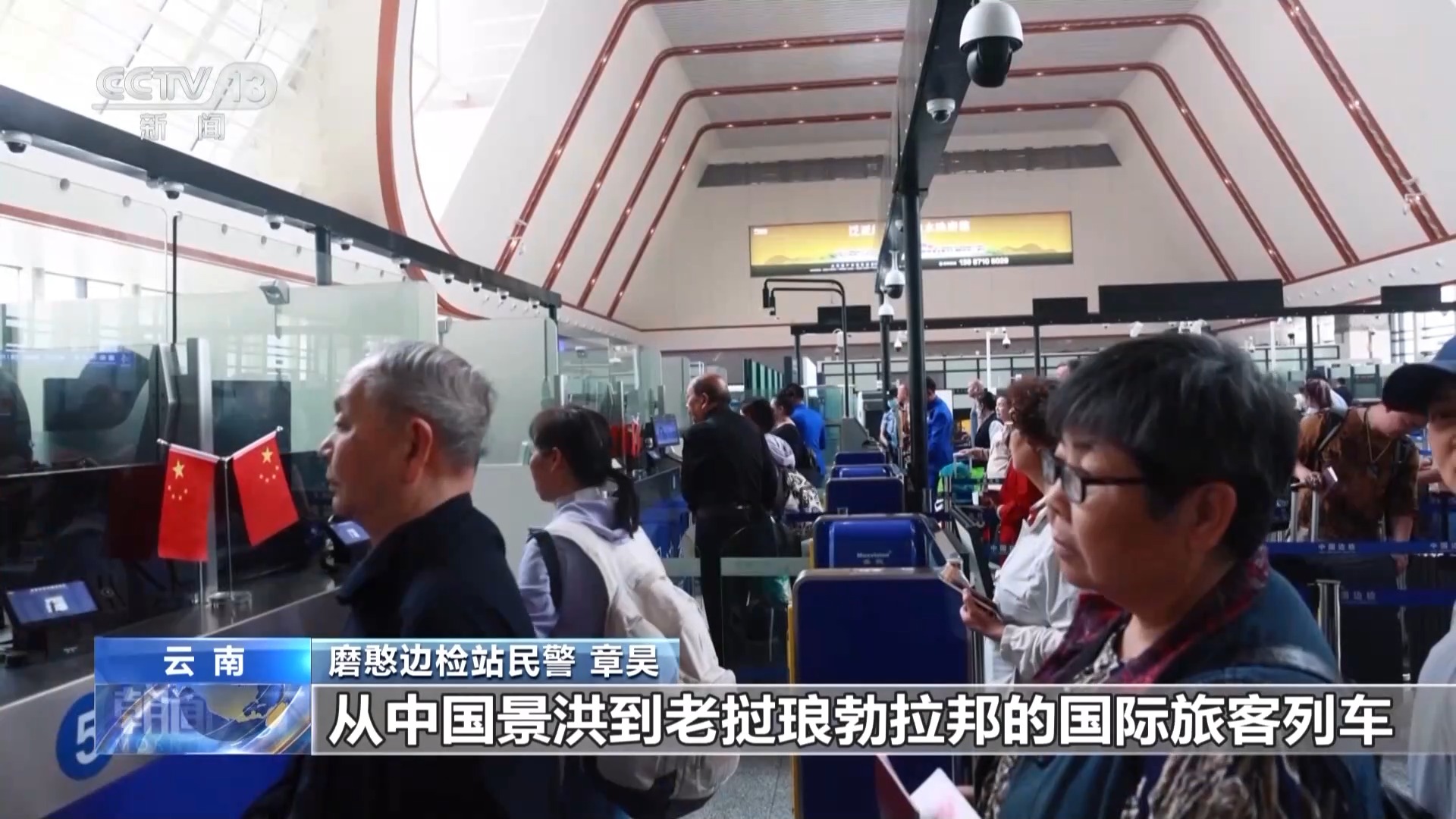 磨憨边检站站长 王强:我们在通关现场配备了能够实时翻译全世界70多种语言的智能语言翻译机,同时设置“一带一路”专用通道,采取提前发放外国人入境卡、入境旅游团网上预约通关、设置现场咨询流动站等便民措施,将旅客查验时间提升了30%,通关时间缩短39分钟。