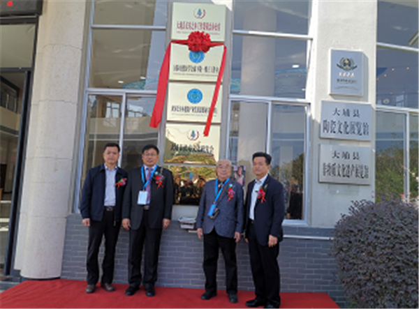 森下敬一、王智墨、梅州市爱卫会副主任黄伟华、大埔县委书记汉东共同为国际自然医学会森下敬一博士医疗研究所揭牌。