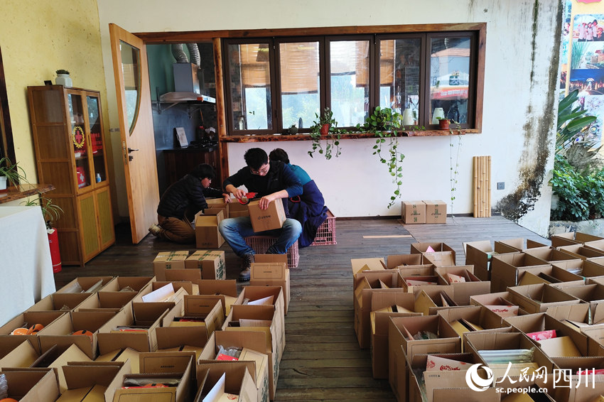 今年春节前,“新村民”们忙着把产品寄给客户。人民网记者 朱虹摄