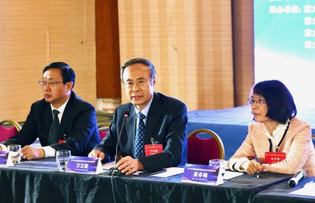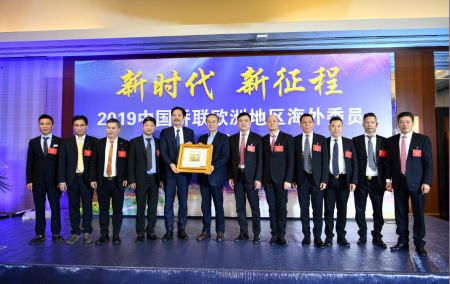 中国侨联主席万立骏(中)讲话(图源:欧洲华人街)