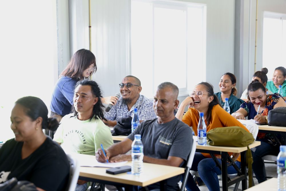 4月3日,在中国援苏里南农业技术合作中心,学员在学习农业相关知识。