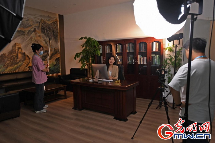2024年4月13日,演员在云想科技短视频剧场影棚内录制拍摄。(光明网记者 潘迪摄/光明图片)