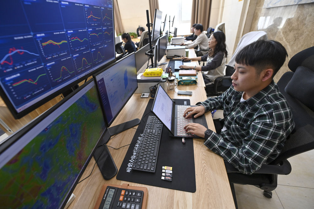 在晋控电力同华山西发电有限公司,电力交易员刘一凡通过测算后,每天都要向电厂下达生产指令。一个个指令,不仅指挥着煤电机组的运行,也关乎着周边风电、光伏场站绿色电力的实时消纳。