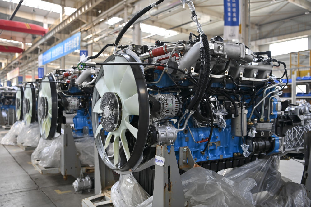 这是在位于山西省晋中市榆次区的山西新能源汽车工业有限公司(吉利晋中基地)拍摄的甲醇发动机(4月1日摄)。新华社记者 杨晨光 摄