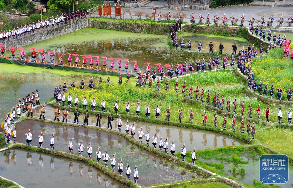 3月22日,人们在贵州省黔东南苗族侗族自治州黎平县肇兴侗寨的田园中演唱侗族大歌。新华社发(卢忠南 摄)