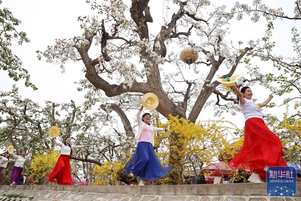 4月13日,游客在甘肃省兰州市皋兰县什川镇古梨园内赏花游玩。新华社发(侯崇慧 摄)