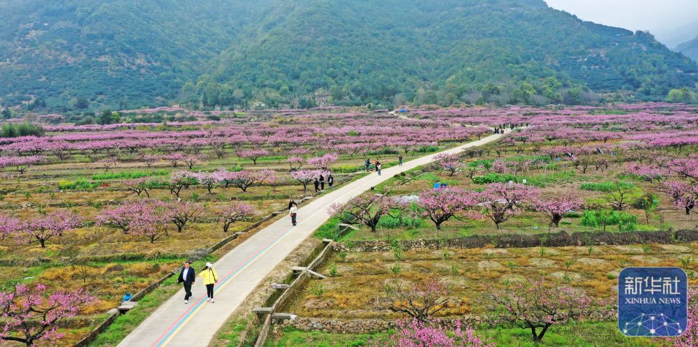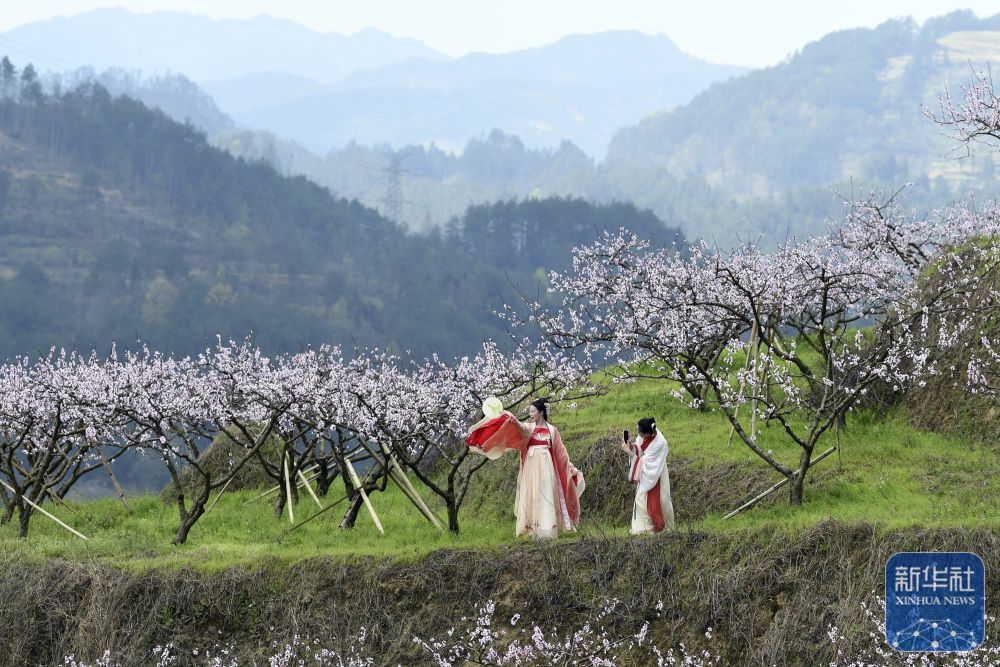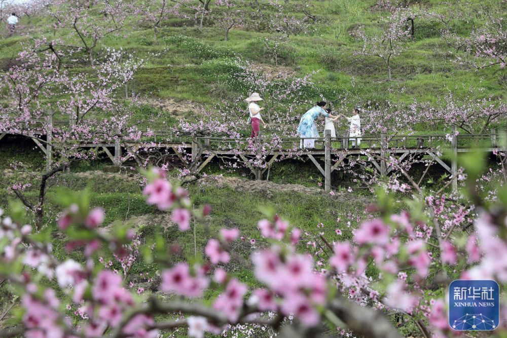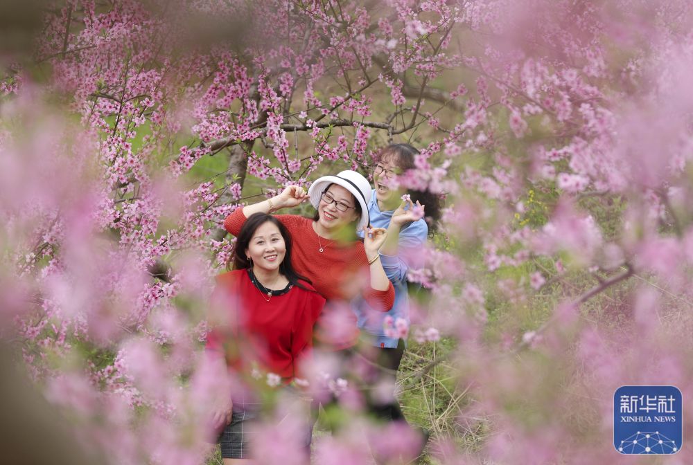 3月20日,游人在贵州省黔东南苗族侗族自治州凯里市的桃林里游玩赏花。新华社发(吴吉斌 摄)