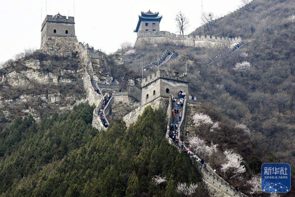 3月24日,游客在北京居庸关长城景区游玩。新华社发(刘满仓 摄)