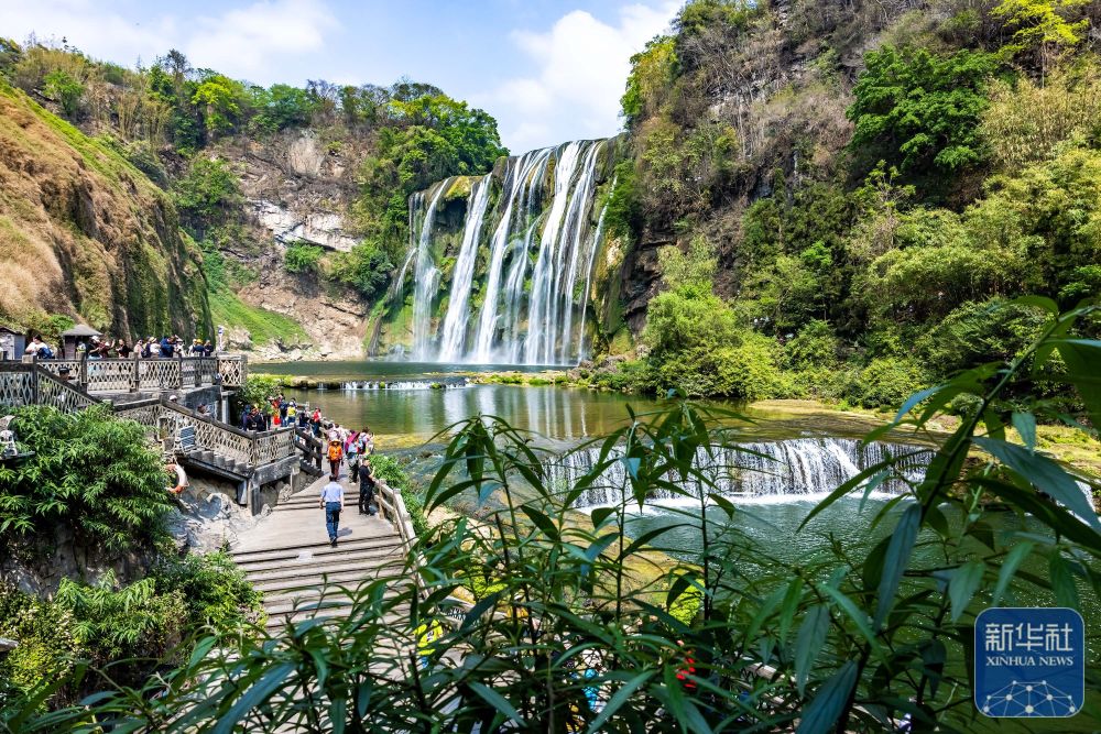 4月10日,游客在贵州省安顺市黄果树瀑布景区游览。新华社发(陈熙 摄)