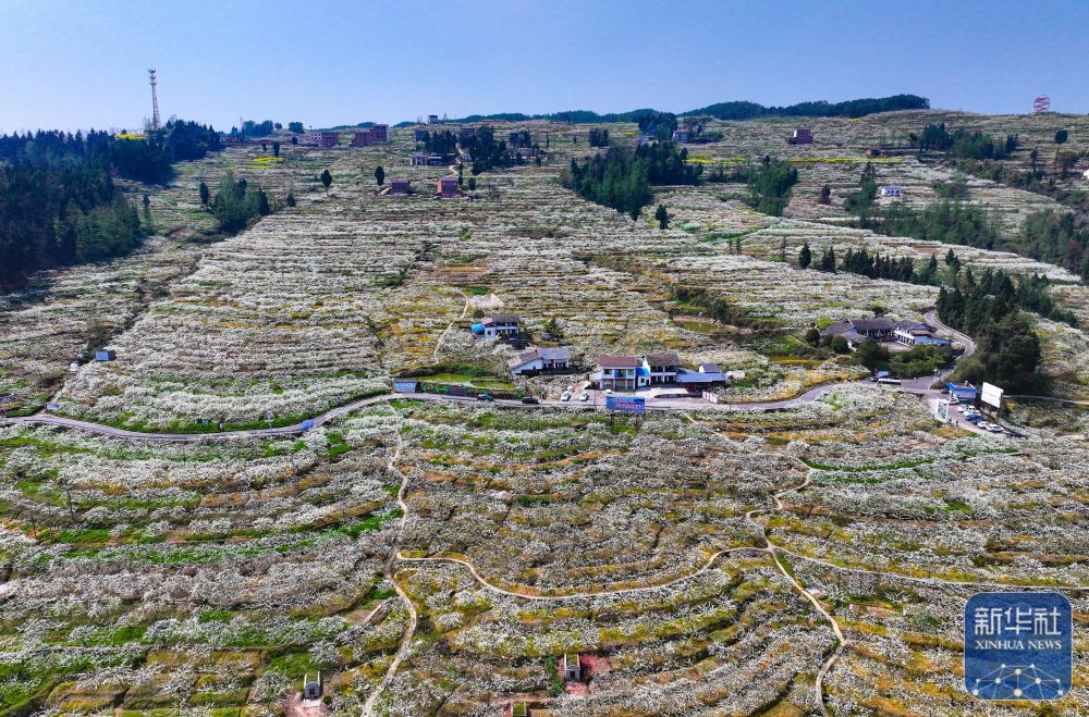 3月22日在四川省达州市宣汉县花果山拍摄的盛开的李花(无人机照片)。新华社发(张平 摄)