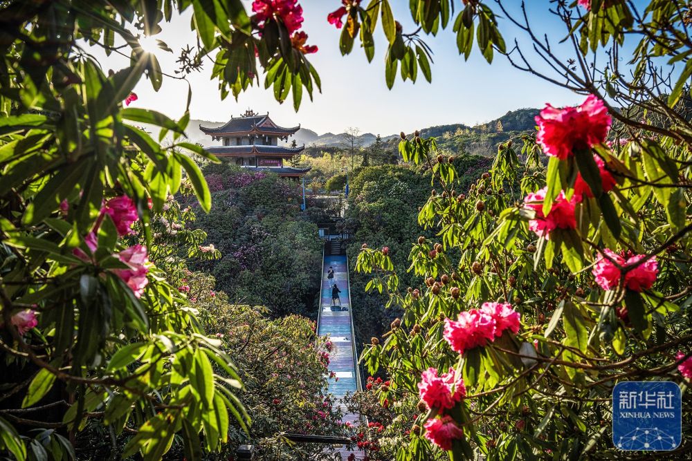 3月25日,游客在贵州省毕节市百里杜鹃管理区金坡景区赏花游玩。新华社发(李华 摄)