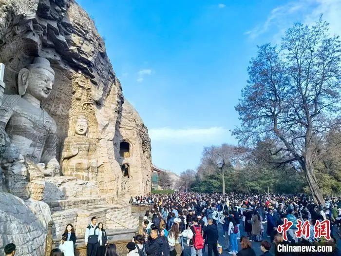 清明假期云冈石窟人山人海。中新网记者 李金磊 摄