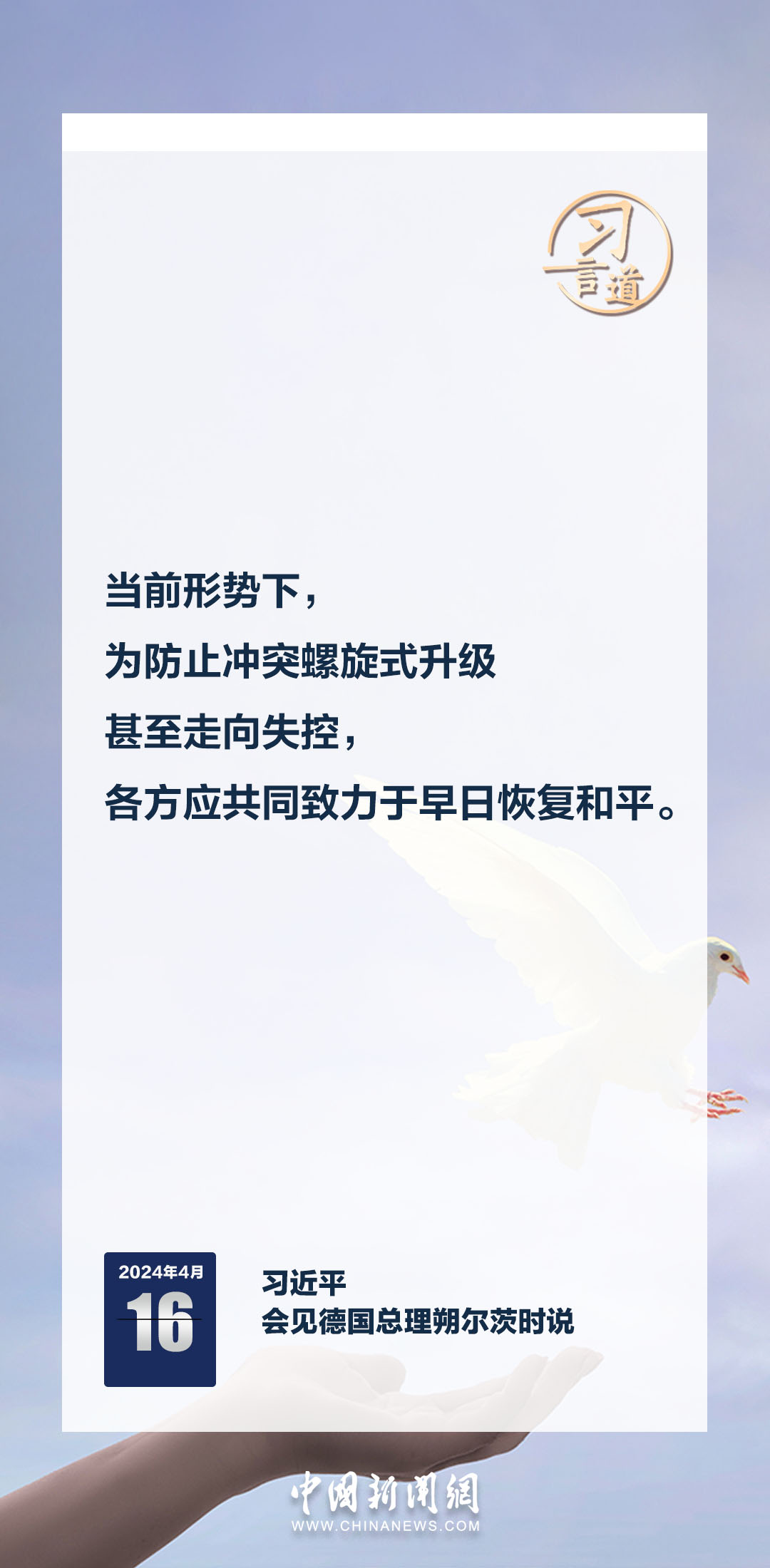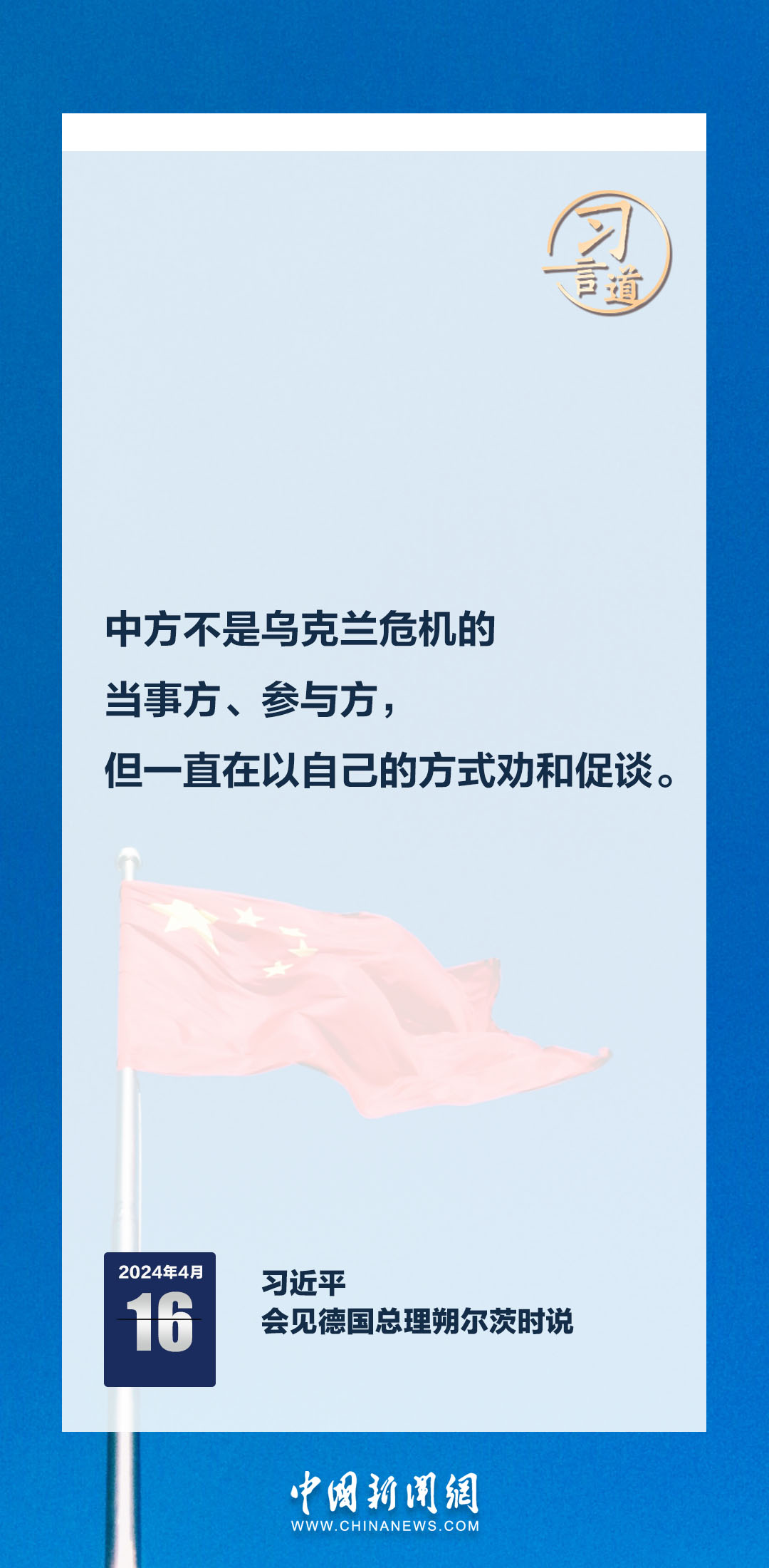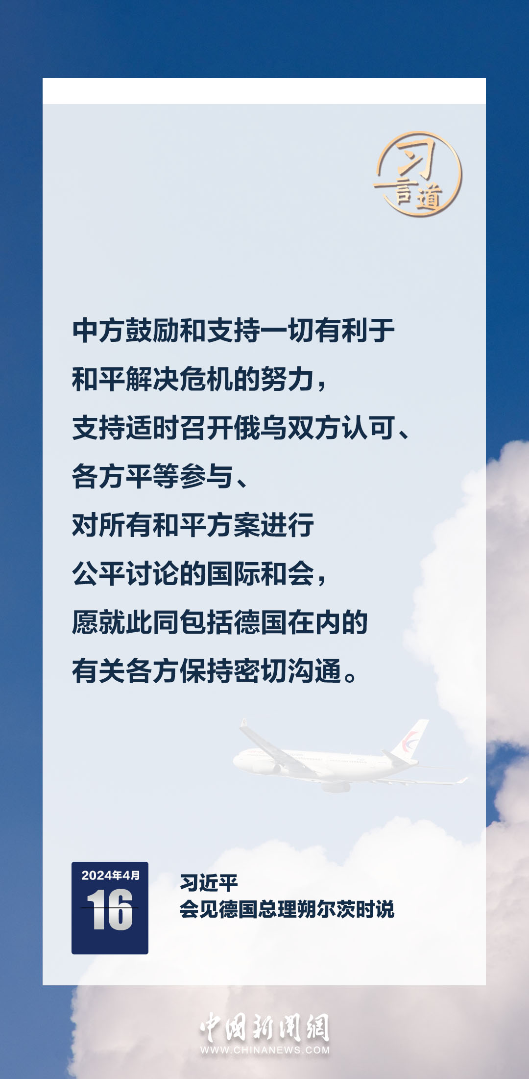 4月16日上午,国家主席习近平在北京钓鱼台国宾馆会见德国总理朔尔茨。两国领导人就乌克兰危机深入交换意见,习近平指出——