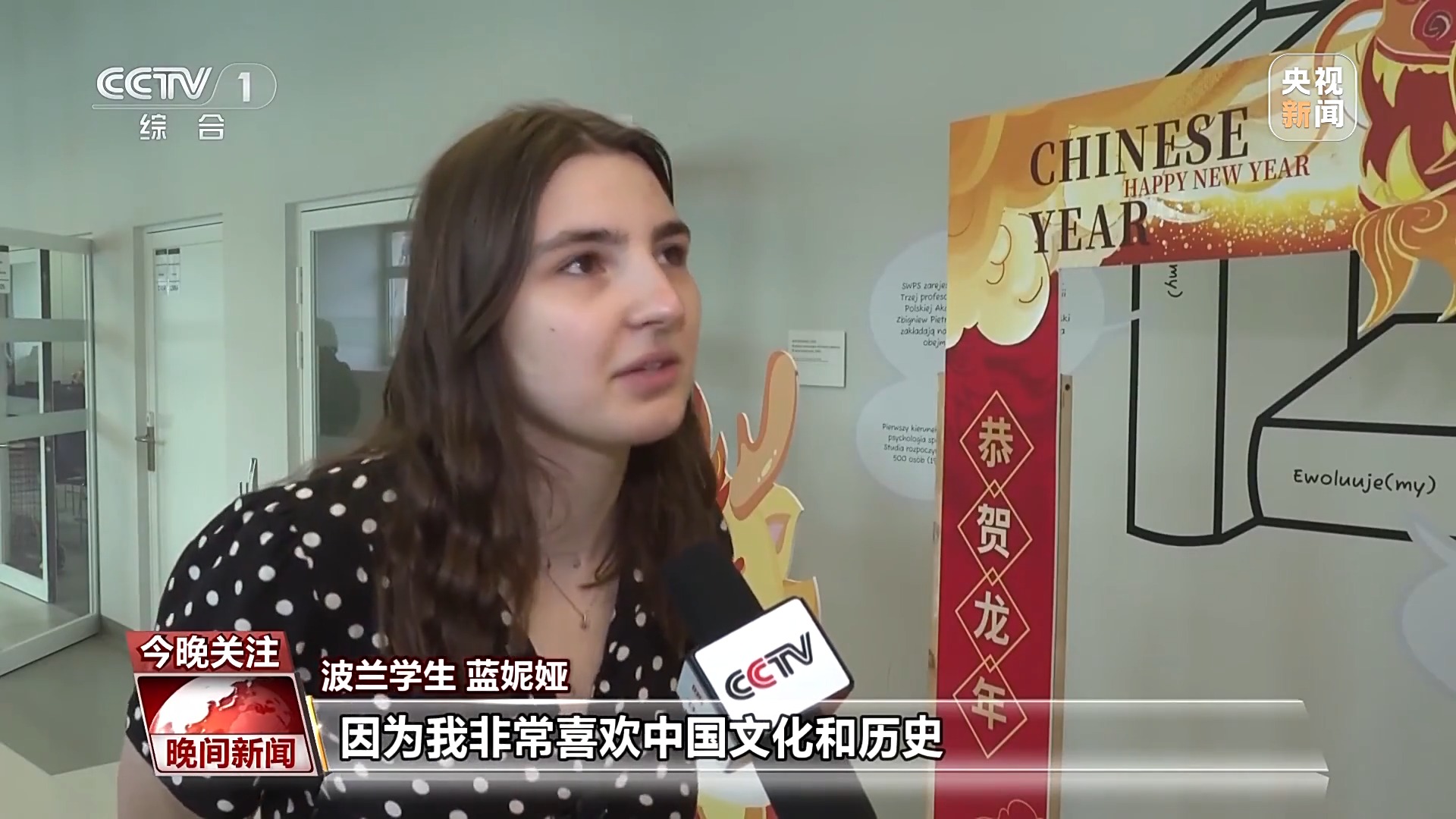 波兰学生 蓝妮娅:我非常喜欢中国文化和历史,我小的时候看过花木兰的故事,觉得中文很有意思。