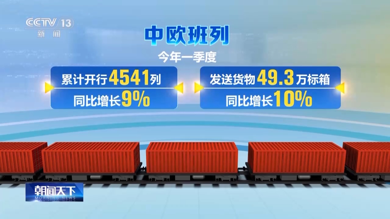 今年一季度,中欧班列累计开行4541列,发送货物49.3万标箱,同比分别增长9%、10%。截至2024年3月底,中欧班列已累计开行超8.7万列,通达欧洲25个国家222个城市。