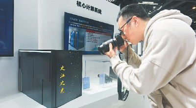 观众在2023第二届全球数字贸易博览会上拍摄“之江之光”超算装置模型。龙 巍摄(人民图片)