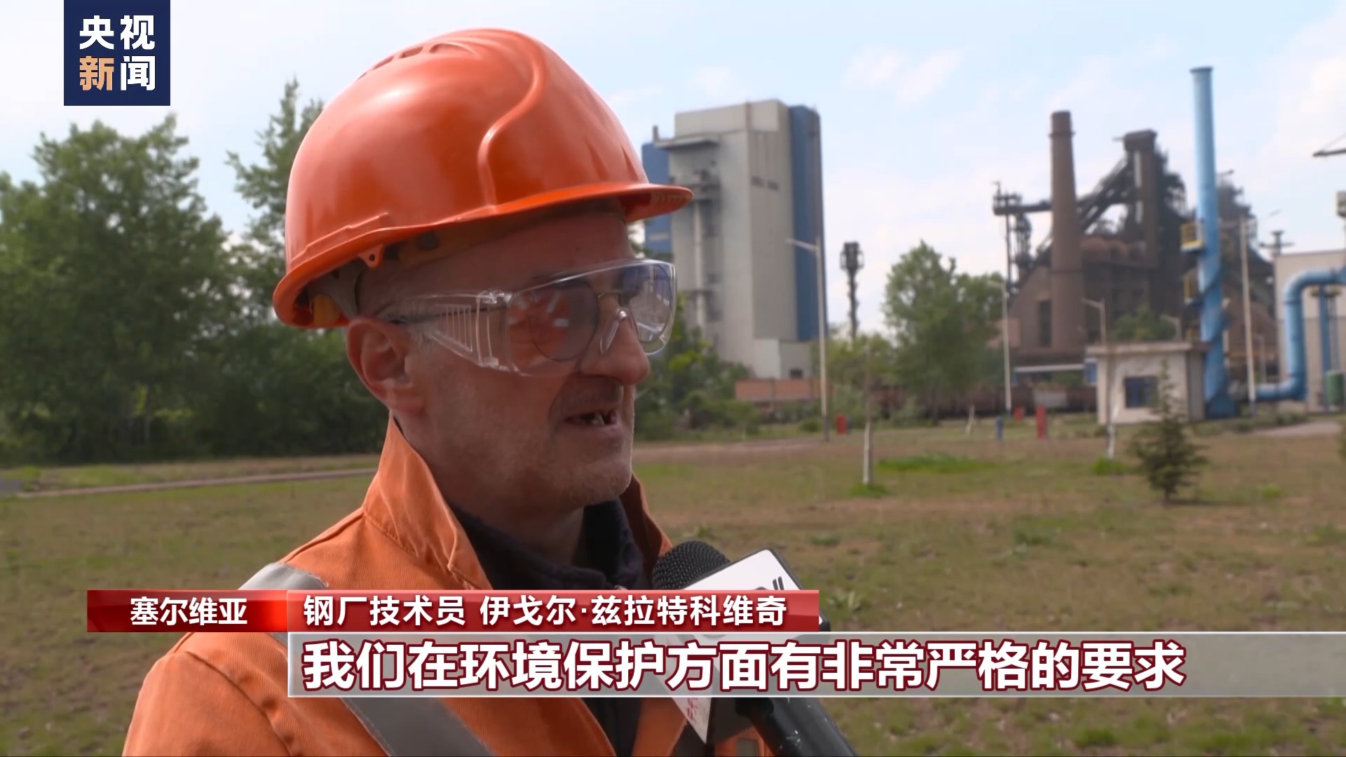 钢厂技术员 伊戈尔·兹拉特科维奇:我们在环境保护方面有非常严格的要求,例如,法律规定粉尘排放标准是50毫克每标准立方米,而我们钢厂的粉尘排放量约为5毫克;法律规定二氧化硫排放量是150毫克每标准立方米,而我们能做到只有2到3毫克。坦率地说,我非常感谢我们的中国同事,他们为我们指明了道路。