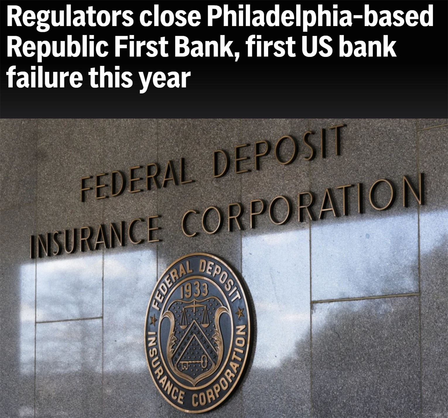 日前,美国联邦储蓄保险公司宣布接管总部设在费城,在宾夕法尼亚州、新泽西州和纽约州等地运营的地区银行——共和第一银行。
