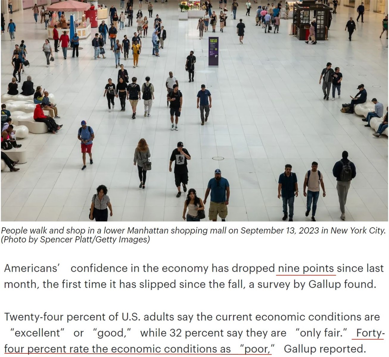 美国《国会山报》的相关报道说,在民调进行期间,油价和通货膨胀率上升,利率居高不下,这可能导致了美国公众对经济状况的信心下降。