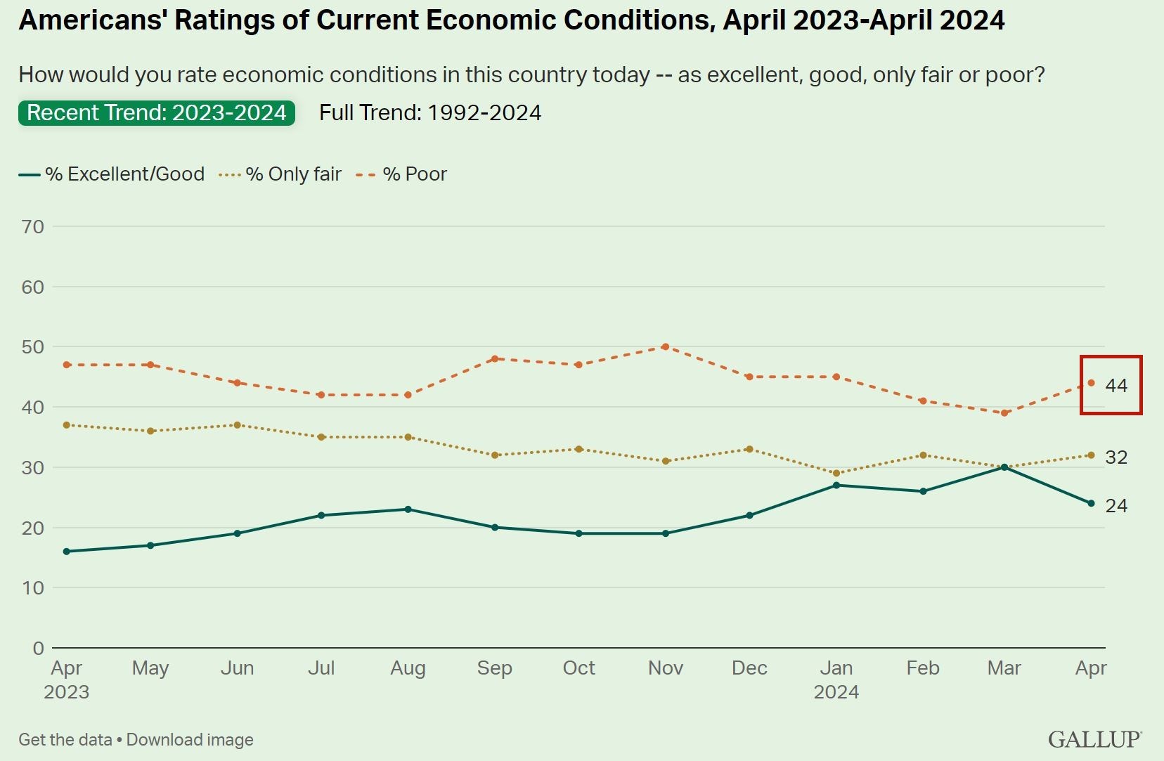 而在民调结果出炉前几天,美国商务部发布的最新数据显示,今年一季度美国经济增速放缓,通胀数据则连续三个月超过预期。