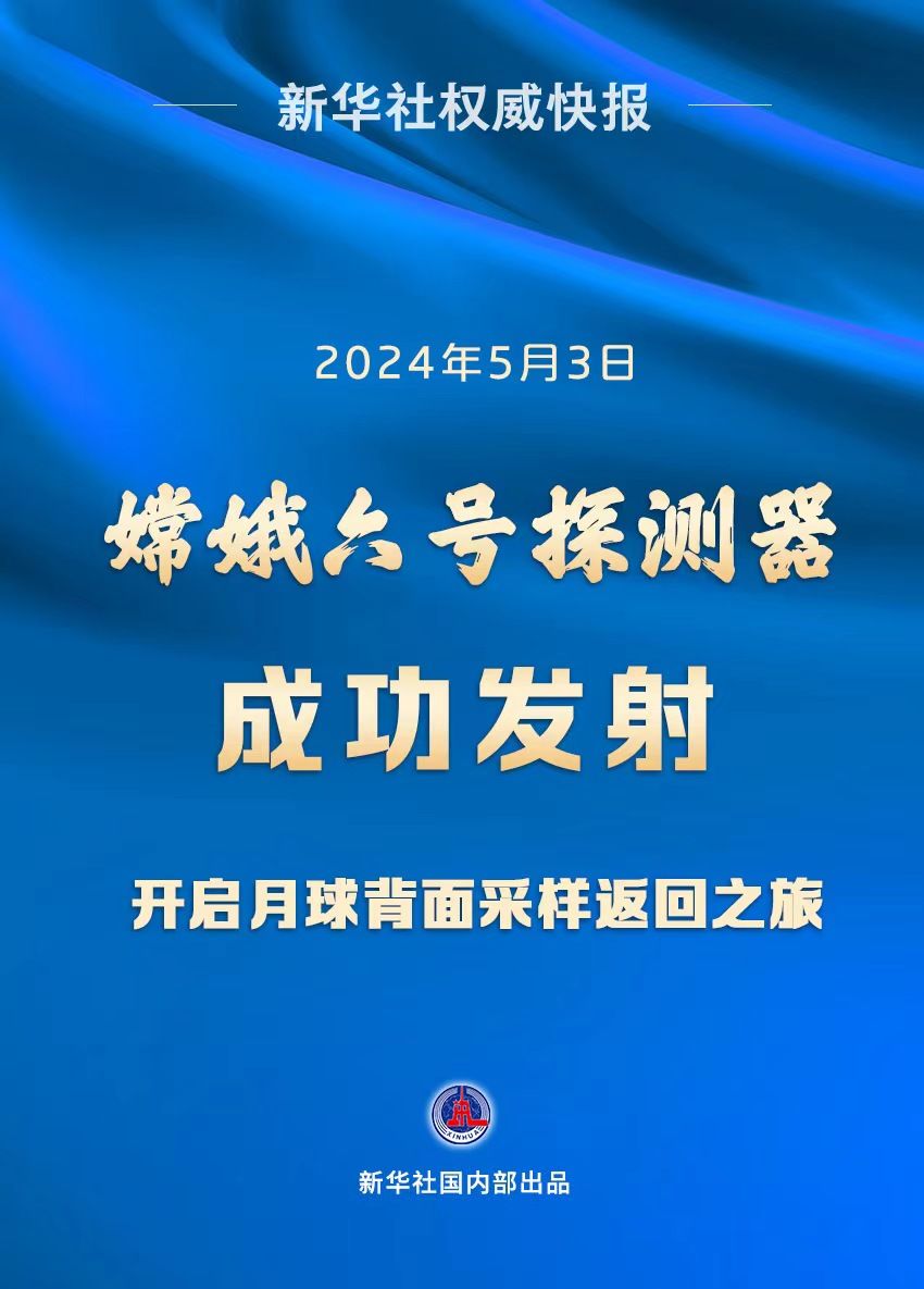 5月3日17时27分,嫦娥六号探测器由长征五号遥八运载火箭在中国文昌航天发射场成功发射,之后准确进入地月转移轨道,由此开启世界首次月背“挖宝”之旅。